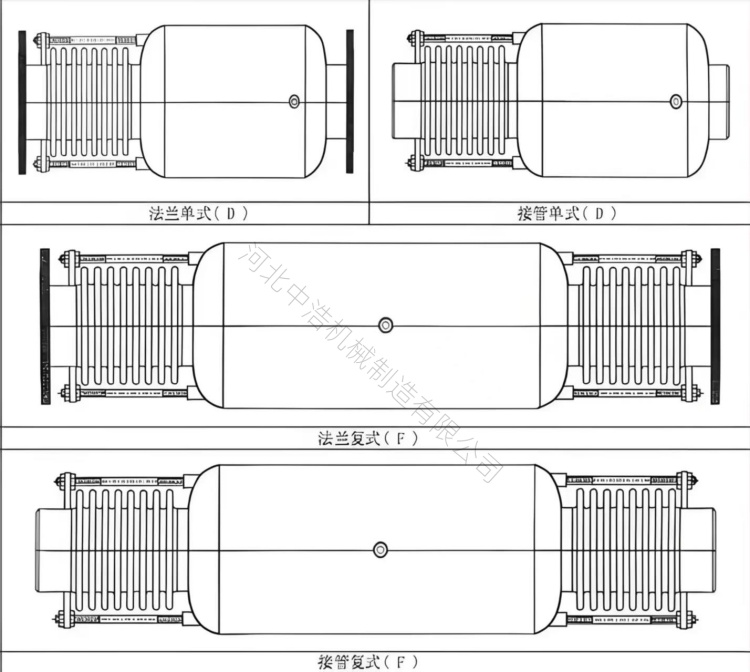 內(nèi)外壓波紋補償器也稱壓力平衡型波紋伸縮器,主要用管道道吸收熱脹冷縮引起位移的補償裝置。主要結(jié)構(gòu)由內(nèi)壓波紋管、外壓波紋管、接管、端板、平衡拉桿等組成,其中內(nèi)壓波紋管主要補償內(nèi)部位移,外壓波紋管補償外部位移,接管連接波紋管和管道,而端板對補償器起到額外固定和支撐作用,平衡拉桿起到平衡壓力和保護(hù)波紋的作用。