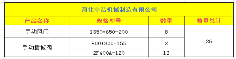 尊敬的彭經(jīng)理,感謝您對河北中浩 產(chǎn)品信任與選擇。很高興通知您,您在河北中浩訂購手動風門、插板閥等產(chǎn)品, 已經(jīng)完成生產(chǎn)、檢驗、包裝等全部工作,現(xiàn)分體運輸,已裝車發(fā)貨,愿您及時了解發(fā)貨詳情,做好接貨準備。特向您提供發(fā)貨相關信息。